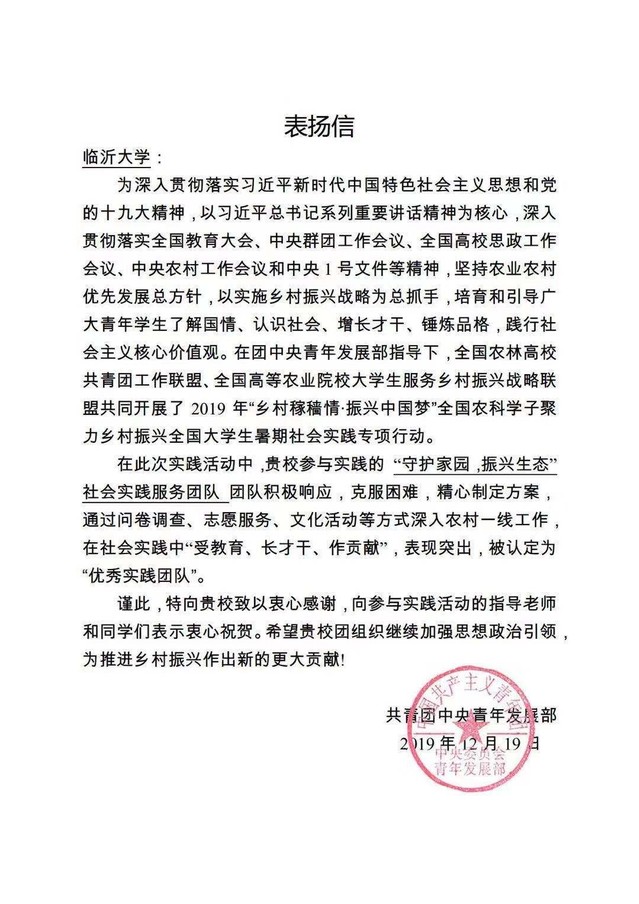 团中央表扬信