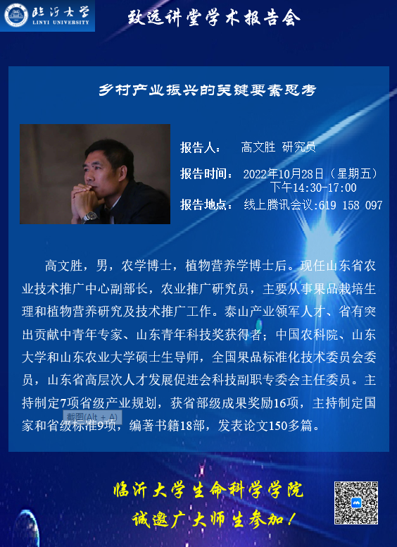 山东省农业技术推广中心高文胜研究员做客致远讲堂