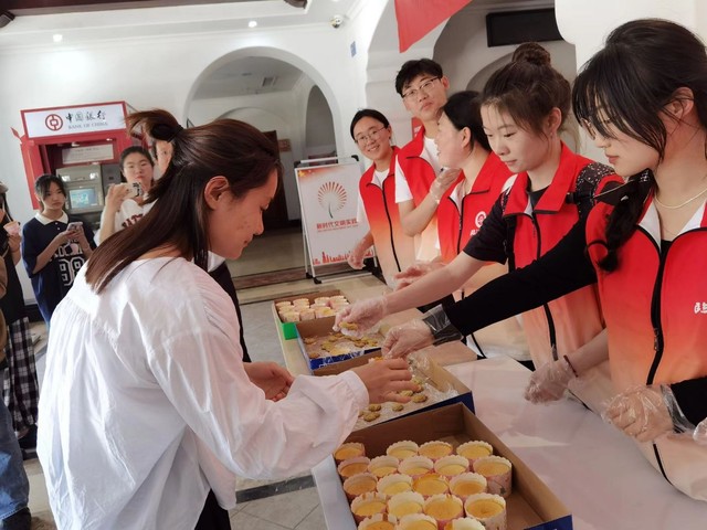活动期间,食品科学与工程专业的学生党员将在实验室内由季慧老师带领制作的精美蛋糕与曲奇带到现场向大家展示,并邀请社区居民品尝,得到居民们的一致好评。