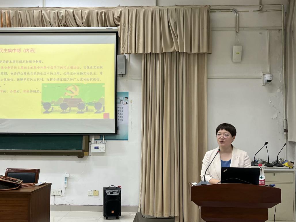 郗冬梅为积极分子讲授《中国共产党的历史》专题党课,以时间顺序结合重大历史事件深刻讲述了中国共产党的历史发展,从党史的缩影中系统阐述了共产党的初心和使命,并结合自身学习经验为学员们传授了学习党史的意义和方法,勉励同学们从红色基因中汲取前进的智慧和力量。