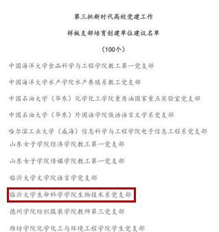 我院生物技术系党支部获批山东省第三批“新时代高校党建工作样板支部培育创建单位”