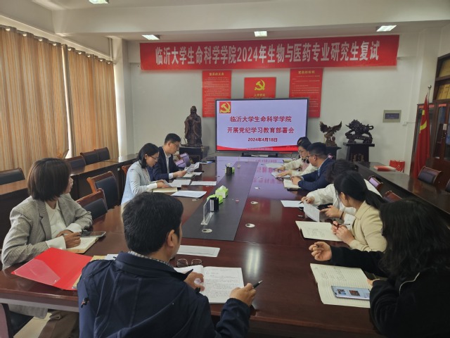 学院党委副书记王世华传达临沂大学《关于在全校开展党纪学习教育的通知》。通知指出,党纪学习教育要不分批次、不划阶段、不分环节,注重融入日常、抓住经常。一要原原本本学,推动《条例》入脑入心;二要加强警示教育,让党员、干部受警醒、明底线、知敬畏;三要加强解读和培训,深化《条例》理解运用。