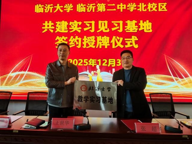 12月3日,我院与临沂二中北校区共建实习见习基地签约授牌仪式在临沂二中北校区圆满举行。我院党委副书记王世华,临沂二中副校长、北校区执行校长张超,相关教师代表及学生代表共同参加仪式。