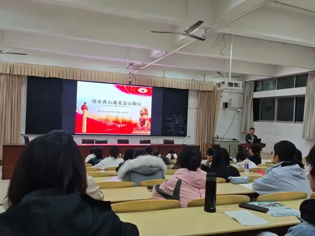 学院院长助理姜兆玉以“绿水青山就是金山银山”为主题,从党的理论发展脉络切入,指出“两山论”是习近平生态文明思想的重要组成部分,是党立足国家发展全局、回应人民对美好生活向往的重大理论创新,号召同学们发挥先锋模范作用,将生态理念融入专业学习与实践,以实际行动践行党的使命,为建设美丽中国贡献力量。