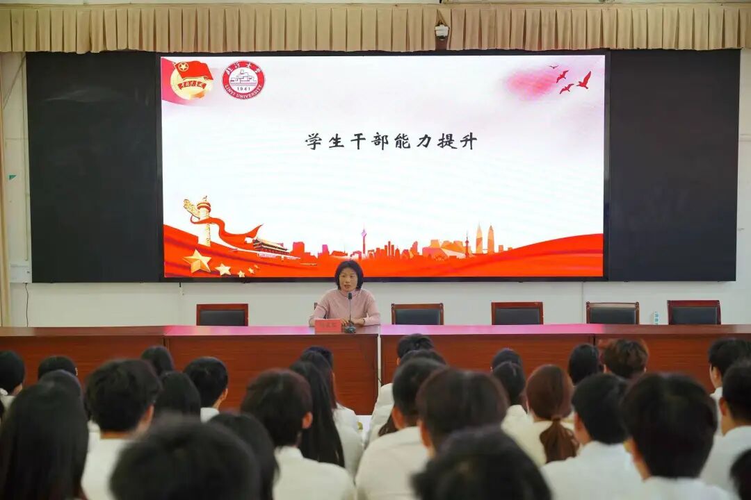 学院学工办主任孙在红以理论辅导筑基、案例剖析提质、实践交流赋能,强化学生干部责任担当、服务初心与协作精神,提升组织协调、沟通表达及创新实践综合素养,为锻造信念坚定、本领过硬、作风优良的学生骨干队伍,助力学院育人工作与校园文化建设注入强劲动力。