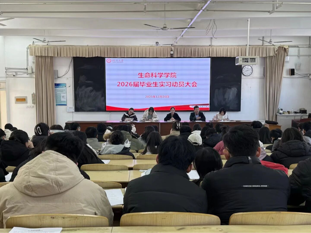 为扎实推进毕业实习工作,帮助学子明晰实习要求、做好职场准备,12月26日下午,临沂大学生命科学学院2026届毕业生实习动员大会于明义6-502顺利召开。学院院长郗冬梅、院长助理姜兆玉、专业负责人成妮妮、毕业班辅导员孙在红、岳臻及全体实习指导教师出席会议,2026届全体毕业生参加。会议由姜兆玉主持。